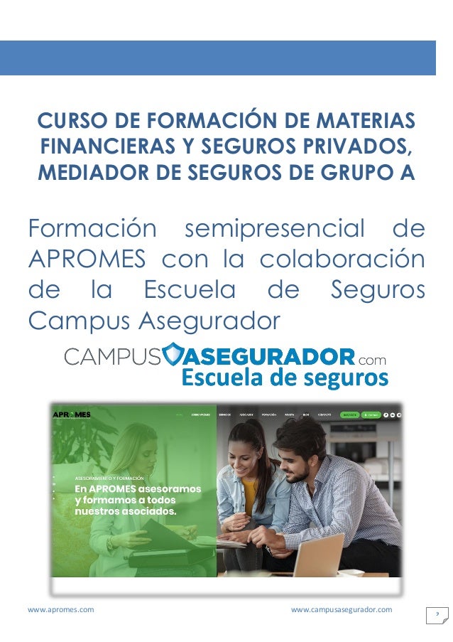 El mediador es un asesor que aconseja al cliente sobre las modalidades de seguro y coberturas que más le convienen en función de su situación personal y, para ello, analiza los riesgos a los que está expuesto y los perjuicios económicos que pudieran surgir como consecuencia. 5 nov 2020 los cursos de formación de mediadores de seguros en los grupos a, b y c comprenden los conocimientos y habilidades necesarias que . Adicionalmente, el mediador de seguros programa está reconocido por la dirección general de seguros y fondos de pensiones para capacitar al alumno como mediador de seguros grupo a (corredor de seguros o agente vinculado) mediante resolución de 24 de abril de 2017.
